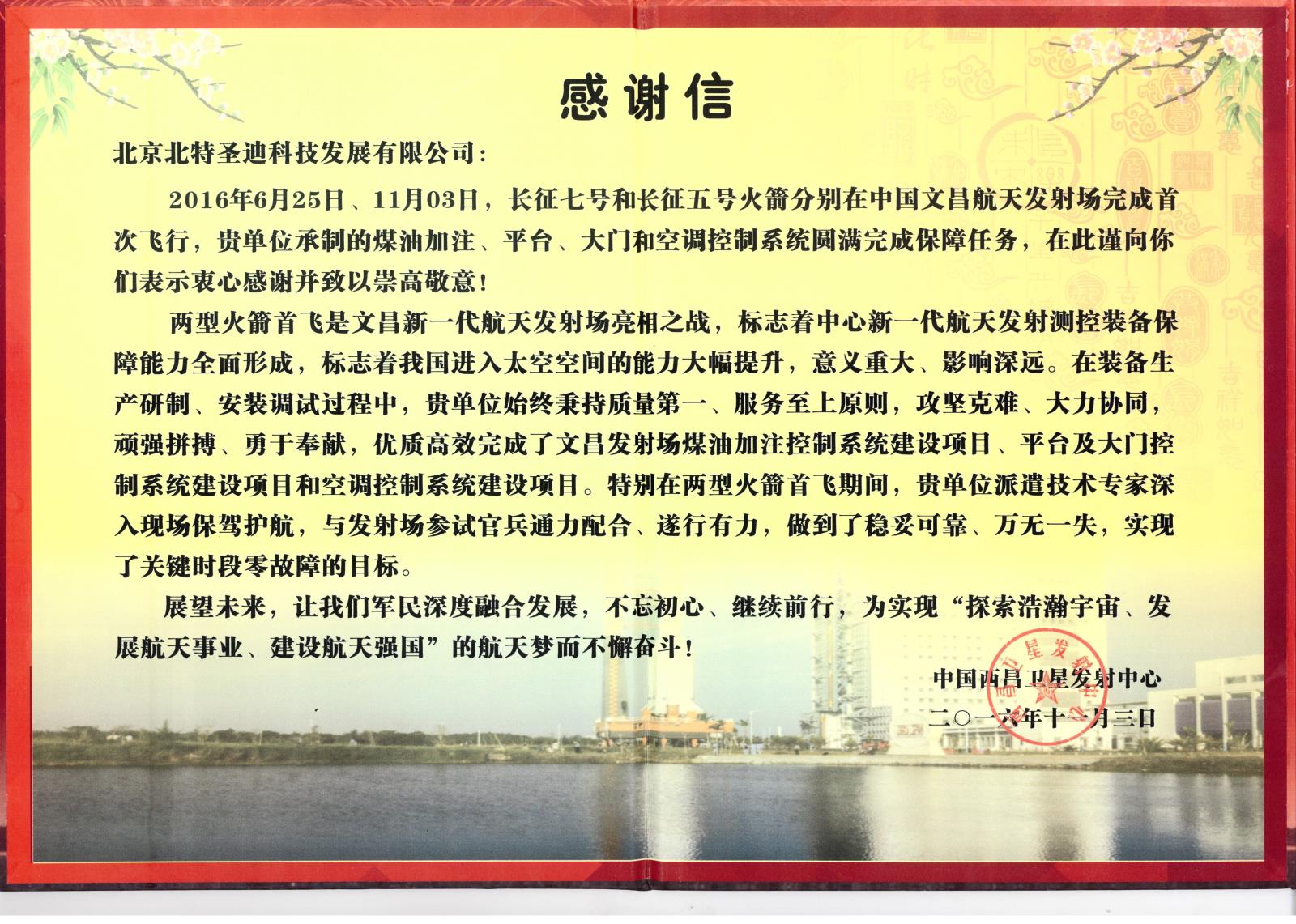 2016海南文昌航天發(fā)射場建設(shè)重大貢獻獎