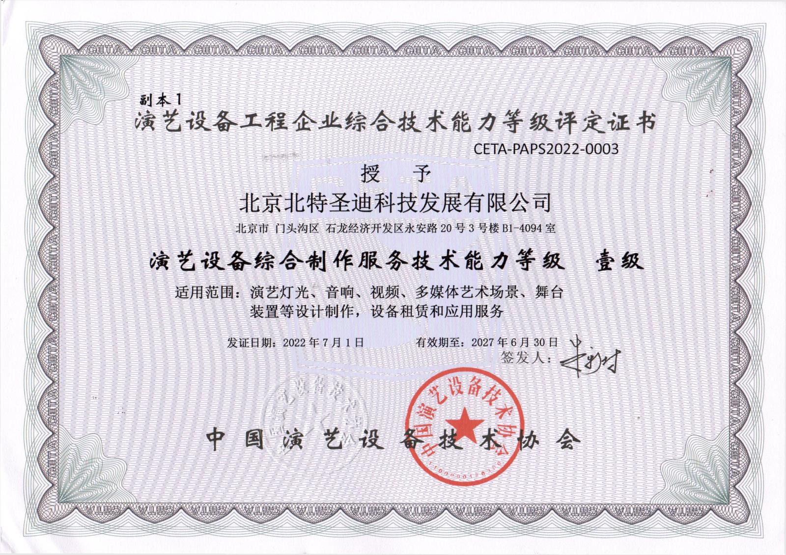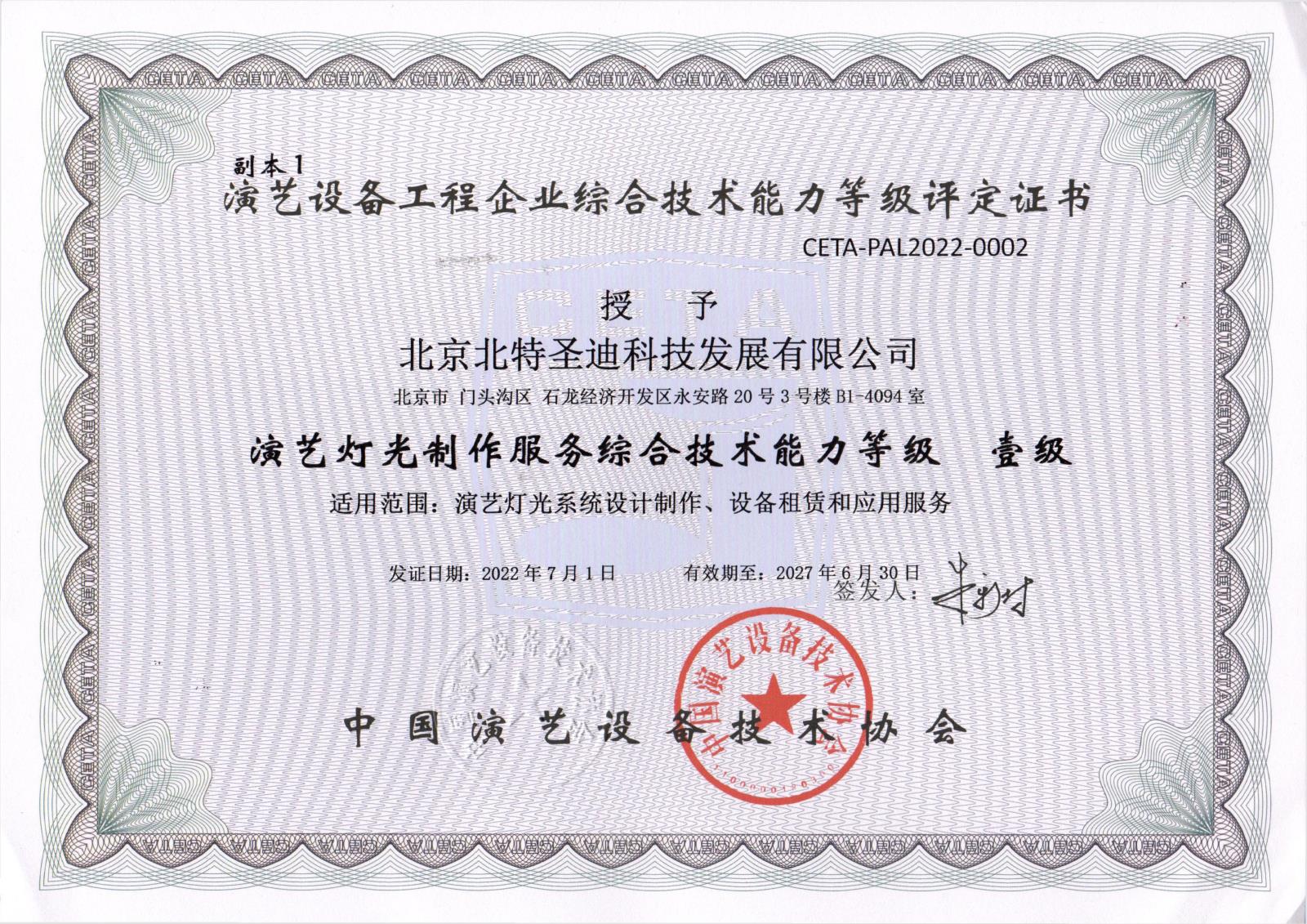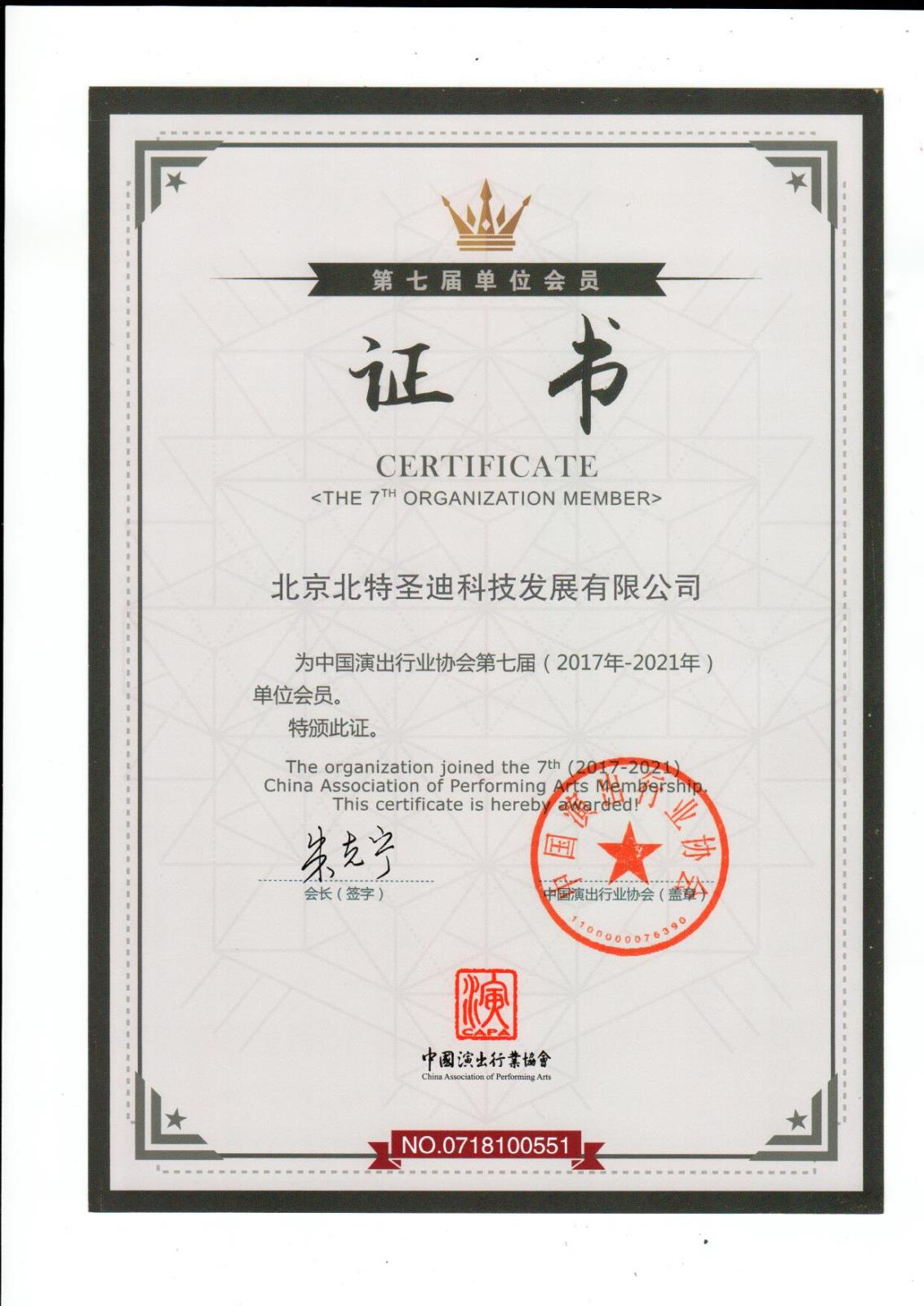 2016中國演藝設(shè)備技術(shù)協(xié)會成立二十五周年新銳企業(yè)榮譽證書