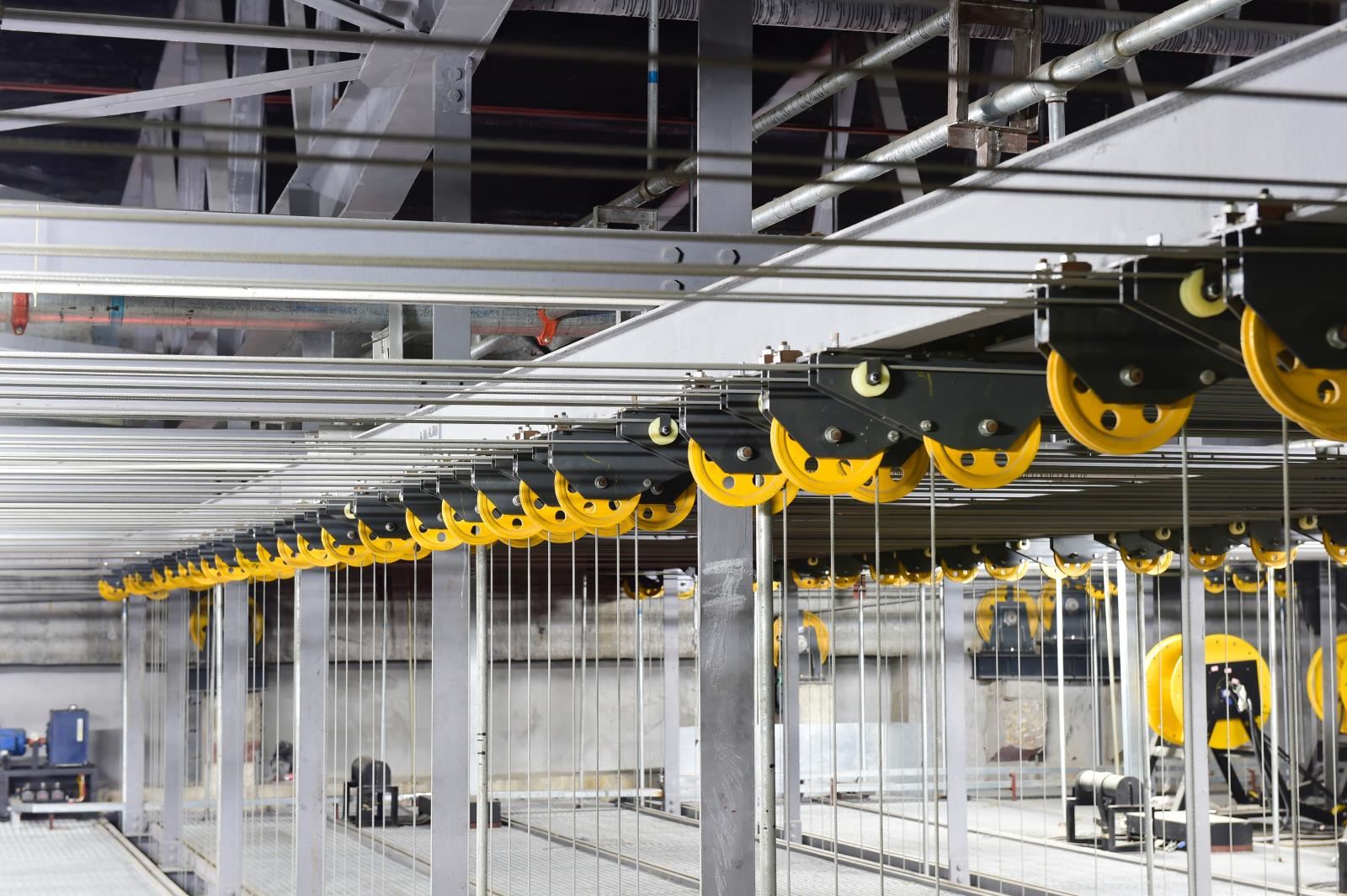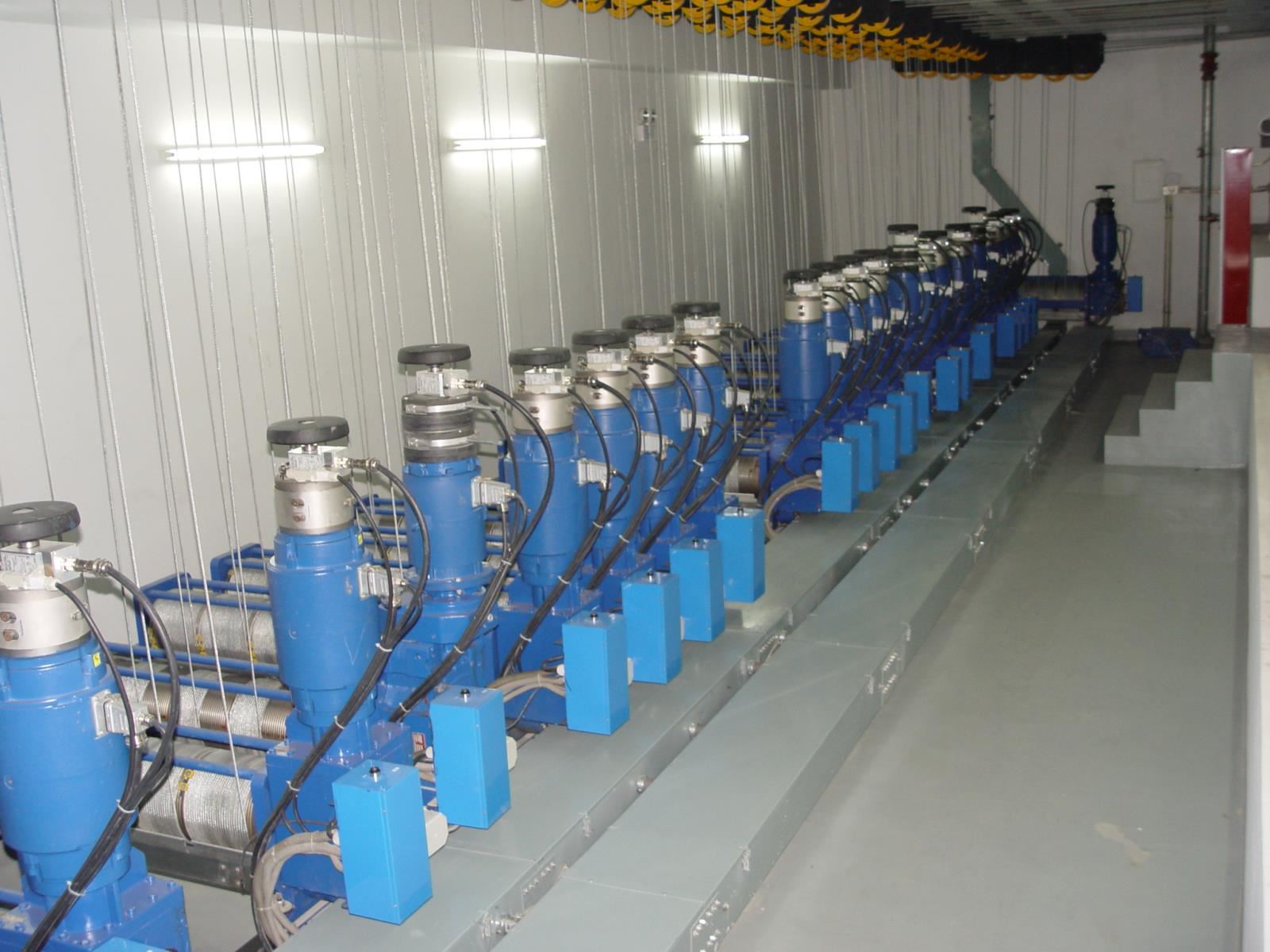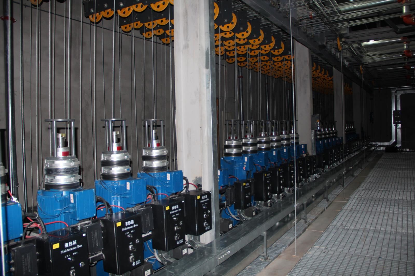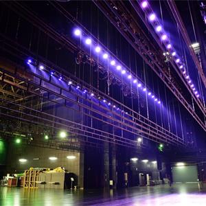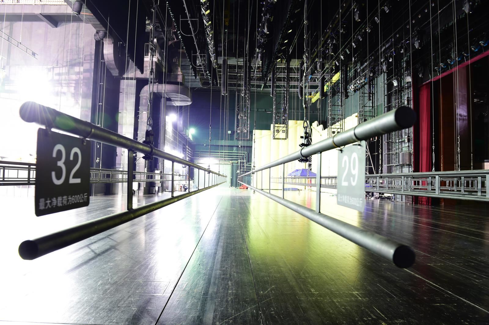設(shè)置于主舞臺或其他舞臺區(qū)域上部、可調(diào)速的電動吊桿,用于提升布景、各種幕布等,參加演出活動;