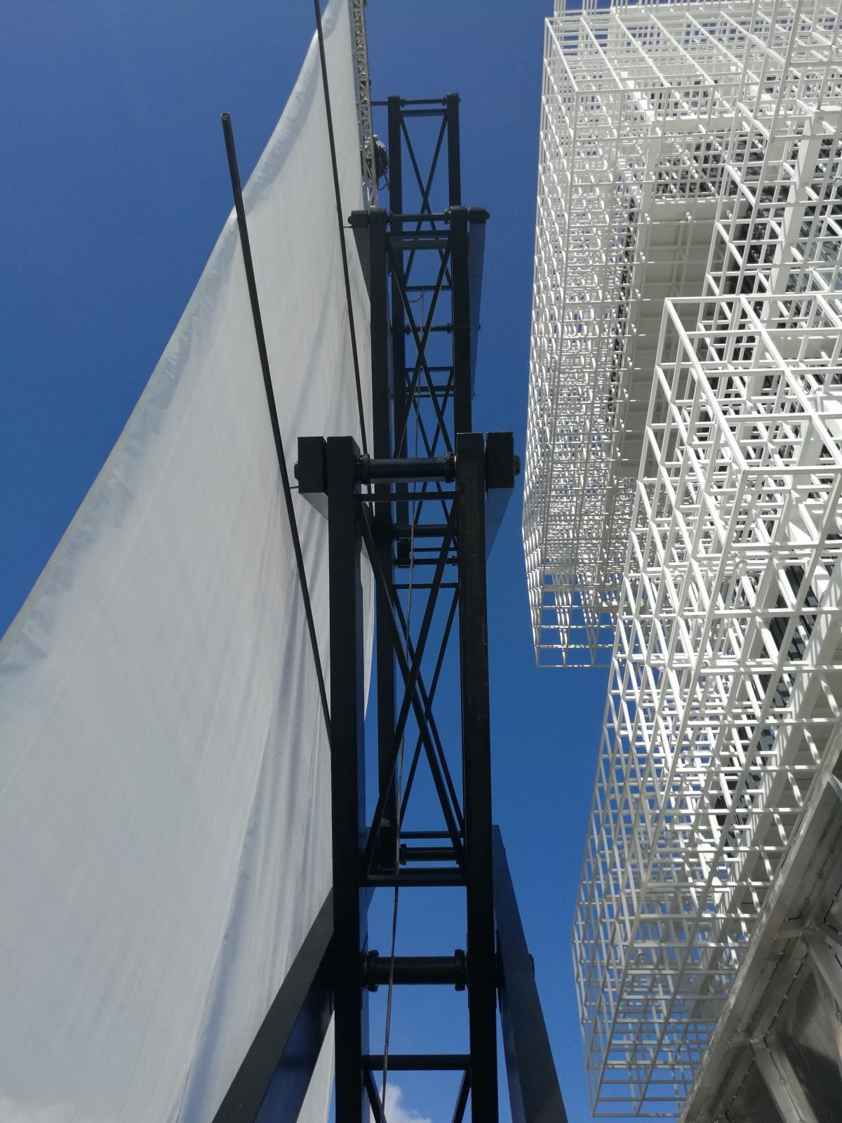 高難度淺基坑大行程無導(dǎo)向大型戶外升降巨型投影框架系統(tǒng)