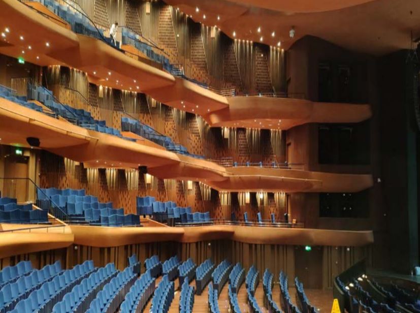機(jī)械聲學(xué)裝置通常設(shè)置于(劇院等的)觀演區(qū)兩側(cè)、后區(qū)或頂部,是一種先進(jìn)的聲學(xué)調(diào)節(jié)裝置,主要用于優(yōu)化不同演出場景下的聲學(xué)效果。通過聲學(xué)裝置的機(jī)械動(dòng)作改變吸聲或反射面積,調(diào)整觀演區(qū)吸聲量,實(shí)現(xiàn)混響時(shí)間動(dòng)態(tài)變化。同時(shí)具有高頻吸收特性,有效減少聲染色和回聲。